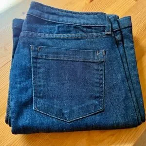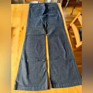 High-rise wide-leg jeans in a deep indigo wash. Clean, simple styling with classic five-pocket design. Smooth dark denim that pairs easily with tops and jackets. Sophisticated, versatile silhouette.