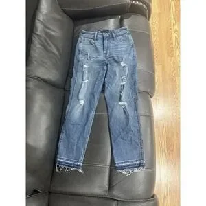 Hollister Collection Boyfriend high rise jeans size 1 w 25 blue‎ ripped womens