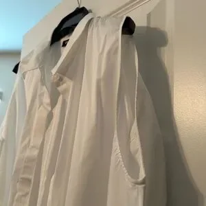 NWOT Donna Karan Cold Shoulder Crisp White Button Down Shirt