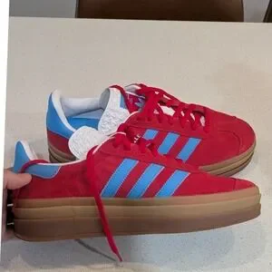 Adidas Gazelle Bold Platform Sneakers Women Red Blue Suede Gum Sole 'Like New'