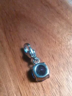 This sparkly charm features a faceted purple stone and a stainless steel lobster claw clasp. Like new, excellent condition.