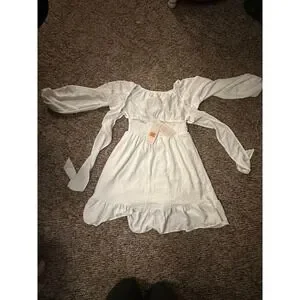White dress, BRAND NEW/, puff sleeve, tie back, white, Size Small
