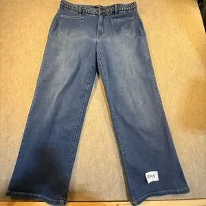 D.Jeans Womens Wide Leg Braided Waist Patch Pocket Denim Blue Jeans Size 14