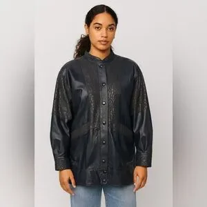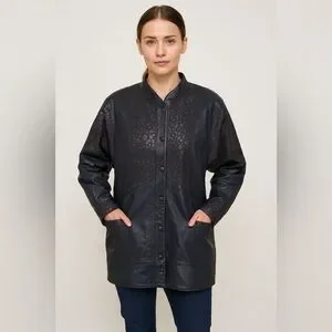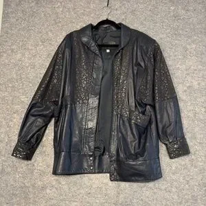 80s leather coat, 90s retro jacket, oversized leather, navy leather jacket, genuine leather women, animal print leather, statement jacket, rocker chic, street style outerwear, biker inspired, edgy fashion, petite leather jacket, Oscar Leopold vintage, rare leather find, casual cool jacket, retro fashion coat,