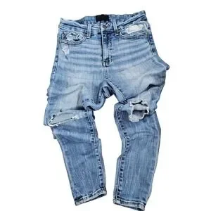 Features: Distressed/Ripped details, classic 5-pocket styling, zip fly with button closure, smoothing pocket technology.
