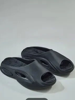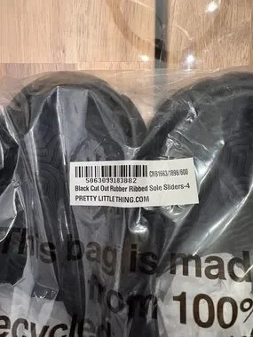 NWT Sz 6 PLT Black Cut Out Rubber Ribbed Sole Sliders Flip flops Sandals Shoes