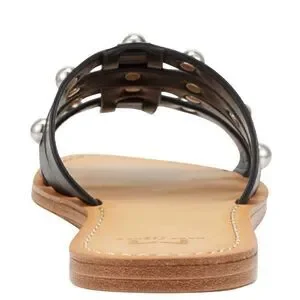 Leather strappy open toe slide sandals with rounded stud embellishments