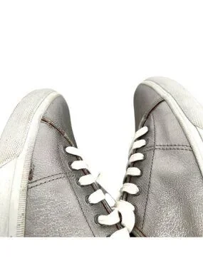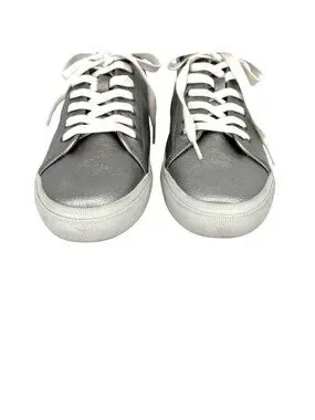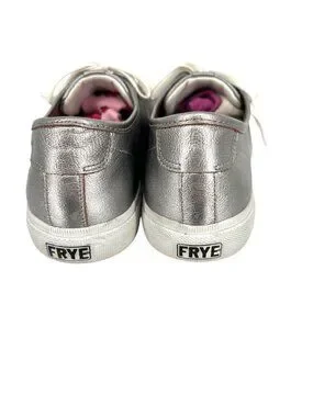 Frye Womens Gia Metallic Silver Leather Low Lace Up Sneakers Size 9.5