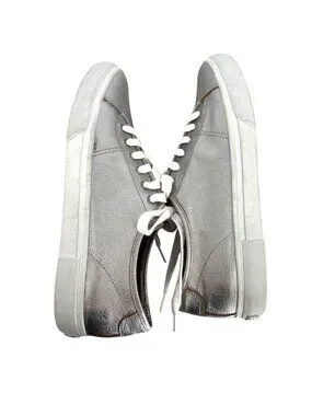 These Frye Gia sneakers offer a chic metallic silver finish and quality craftsmanship. The leather material ensures durability and a sophisticated look. Designed with a lace-up closure, these sneakers provide comfort and style for casual outings.