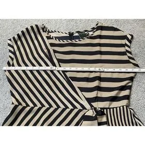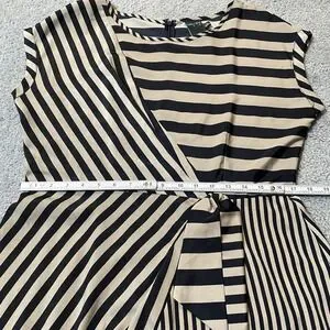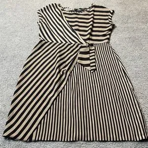 Gabby Skye Striped Mini Dress Sz 14 Beige Black Side Tie Workwear Party Wedding