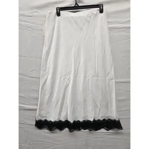 A New Day Cream Lace Trim Midi Slip Skirt Womens L Textured Satin 018051918 NWT