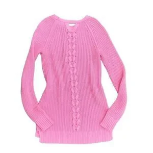 Tahari Girls Size Large Knit Sweater Sparkles Crisscross Back Pink Long Sleeve