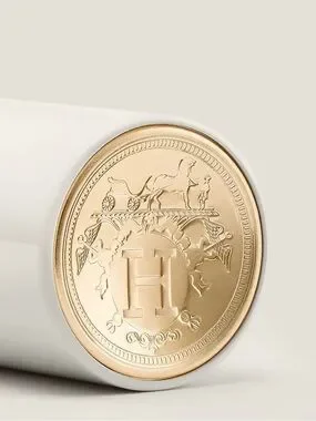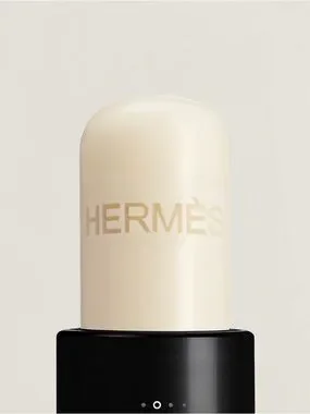 Hermès lip care balm in a sleek white and gold tube. Clear/translucent balm. Elegant travel-friendly design. Lightweight, nourishing formula.