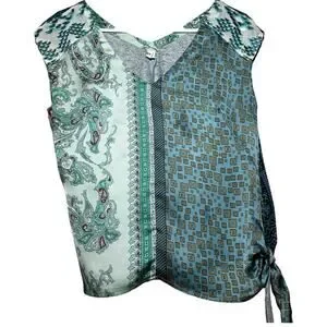 Anthropologie Tiny Top Sleeveless V-Neck Side Tie Floral Blue XSmall