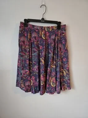 LuLaRoe Madison Skirt Purple Pink Paisley Pleated A-Line with Pockets Size Large