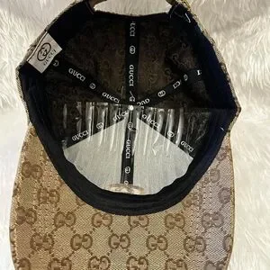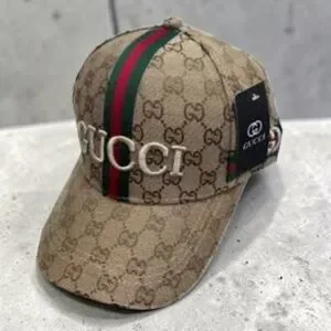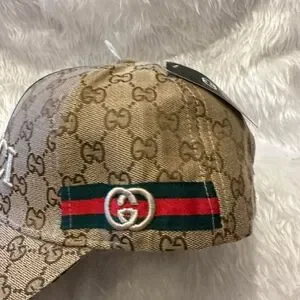 Classic cap in signature GG canvas. Bold embroidered GUCCI logo at front. Center red and green web stripe. Versatile everyday accessory.