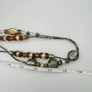Coldwater Creek Brown Neutral Multi Shape Beads Seed Bead Layering Long Necklace