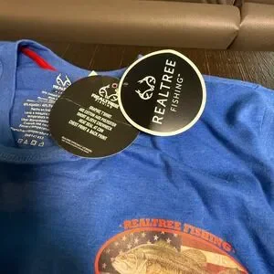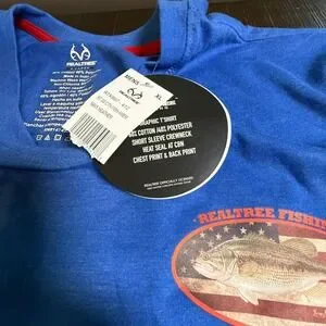 Realtree Fishing Mens XL Blue Graphic T-Shirt Bass USA Flag Navy Heather RTK897