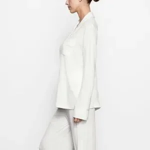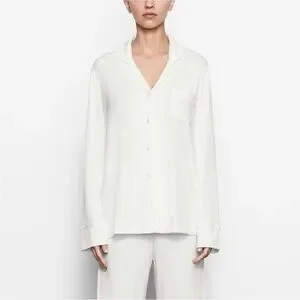 SKIMS Modal Soft Lounge White Sleep Top, Button Down