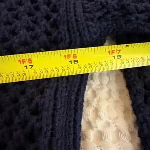Coastal Grandma Talbots Navy Blue Open Knit Mesh V-Neck Crochet Sweater Top