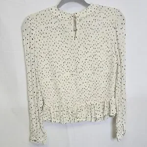 Patrons of Peace Smocked Long Sleeve Polka Dot Top, Cottage, Cream Black, Large