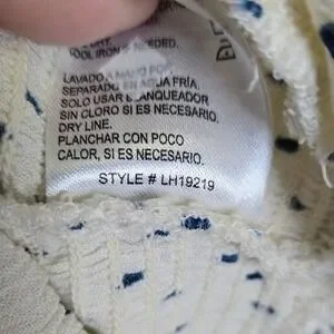 Details: Long Sleeves. Button cuffs. Keyhole in back with buttons. Smocked texture, stretchy. Polka dot pattern/print.