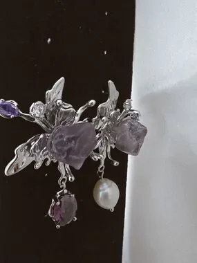 #women #earrings #jewelry #amethyst #crystal #pearl #purple #jewelry