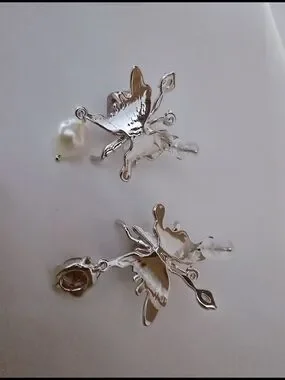 NWOT. Elegant silver-tone earrings featuring purple crystal centers and mixed purple gemstone accents. One earring is finished with a delicate white pearl drop for a unique mismatched look. Lightweight and eye-catching, these purple earrings add feminine sparkle to any outfit.