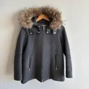 Sandro's impeccable French tailoring meets practical winter warmth — a luxurious wool blend coat with a fur-trimmed hood that elevates any cold-weather look. The gray colorway is endlessly versatile and works with everything. Perfect for fall/winter styling, workwear, quiet luxury, and old money aesthetics.