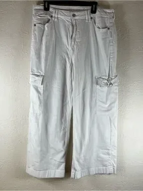 American Eagle Dreamy Drape Stretch Super High Waisted Cargo Baggy Wide Leg Jean