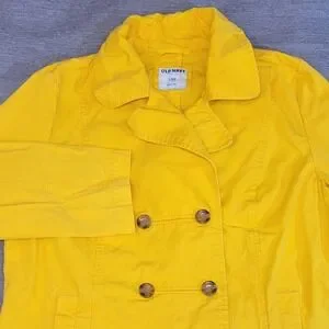 Old Navy Womens Yellow Double Breasted Pea Coat Jacket Large Classic Notched L