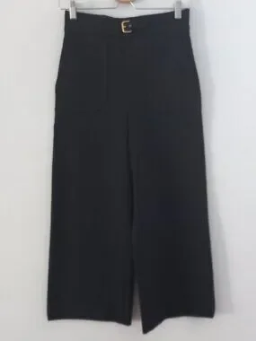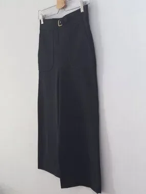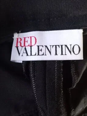 RED VALENTINO black high waist wide leg dress pants with gold belt buckle