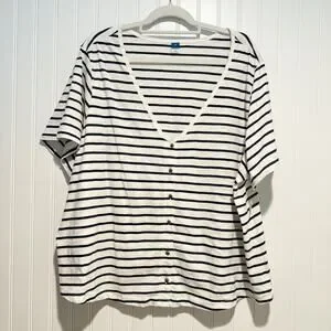 Old Navy White Navy Striped Slub Knit Top NEW Size 2X