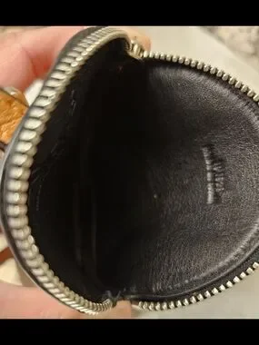 Stylish striped design and brown anagram coin pouch/bag charm. Clean two-tone stripes give a modern, versatile look. Perfect for organizing coins and small essentials.