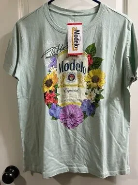 Modelo Women’s Green Floral Logo Tee - Short Sleeve size XS NWT NEW