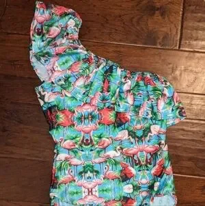 Style: Slip on, Beach, Pool, Pink Flamingo, One Shoulder, Ruffle, One Piece, Double Layered, High Quality, Luxury, Flirty, Girly, Colorful, Summer, Ocean, Sea, Cruise, Athleisure, Flamingos, Tropical, Animal, Bathing Suit