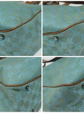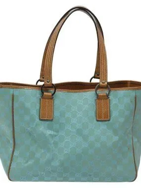 GUCCI GG Canvas Tote Bag Turquoise Blue 113017 Auth 115077