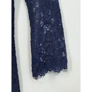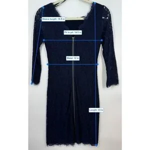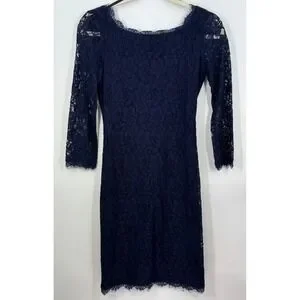 Diane von Furstenberg Navy Lace Sheath Sheer Dress Zipper Front Size 2 Business