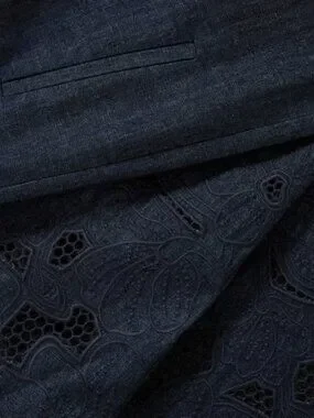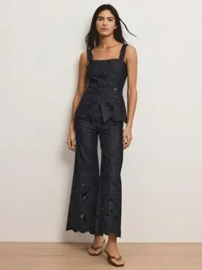 Expertly crafted from premium cotton chambray, the Osborne pant is defined by intricate floral eyelet embroidery. Designed with a Hollywood waist and double darting, its wide-leg silhouette is exceptionally flattering. Slip pockets and back welt pockets add functionality, while a scalloped hem provides a feminine finish. Pair with the matching Mirielle top for a fresh take on set dressing.