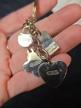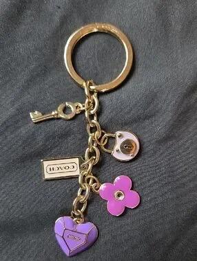 COACH Purple Colors Padlock Key Heart Flower KEYFOB CHARM HANGTAG KEYRING