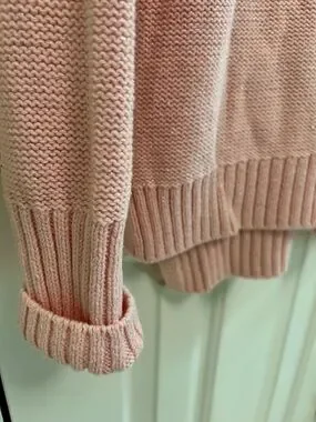 Chaps Pink Cable Knit Sweater Silver Metallic Thread Size Large