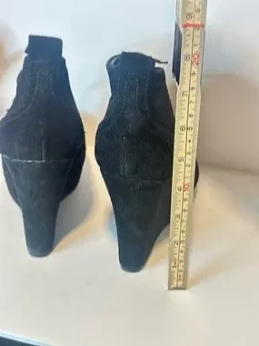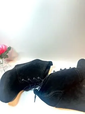 Jessica Simpson Dark Academia Grunge Black Suede Lace-Up Wedge Booties