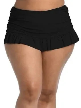 Equal parts sexy and sweet, this ruffle skirt swim bottom with built-in pants has a flattering hipster fit with a ruched band that instantly slims the tummy. Full coverage in back ensures these bottoms stay put for worry-free lounging and swimming.