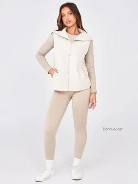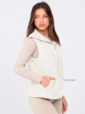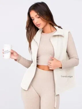 Style: Sleeveless fuzzy zip-up vest with V-neck and quilted silhouette