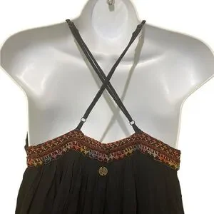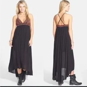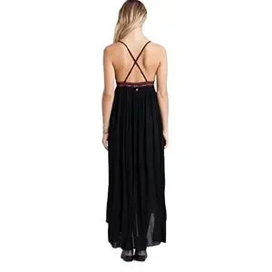 Billabong Wild Skies Maxi Dress Embroidered Empire Waist Gauze Cotton Festival
