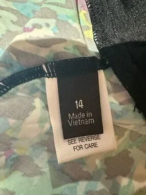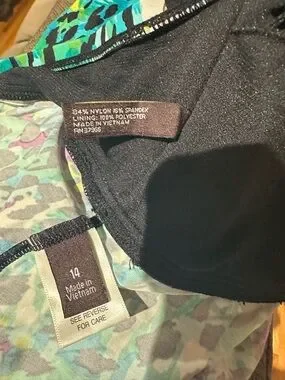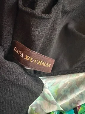 EUC Dana Buchman Black Swim Top with Green and Turquoise Leopard Accents Sz 14