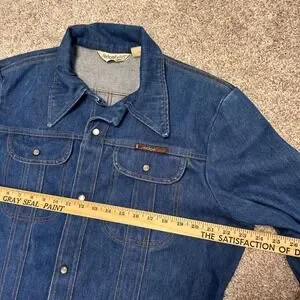 Vintage Sedgefield Denim Jacket Men Size Large Made in USA Pearl Snap Rockabilly