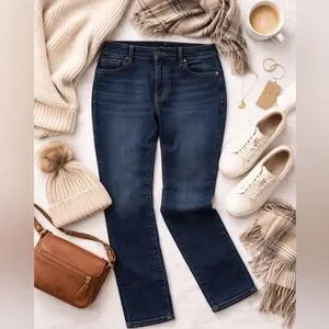 Classic and flattering Lane Bryant Genius Fit Straight Leg Jeans in a versatile dark wash—perfect everyday denim with comfortable stretch.