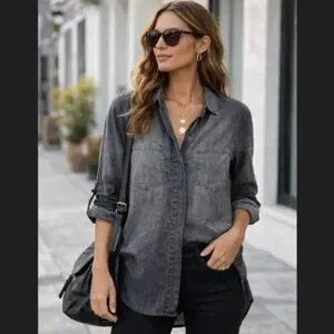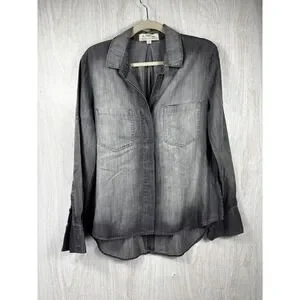 Cloth & Stone Tencel Button Down Shirt M Gray Washed Soft Denim Chic