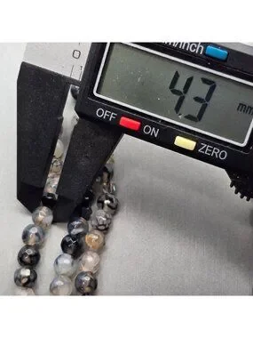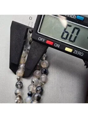 The Dendritic Crazy Lace Agate beaded necklace features a versatile design with an adjustable chain and secure lobster clasp, adding elegance to both casual and formal attire.
